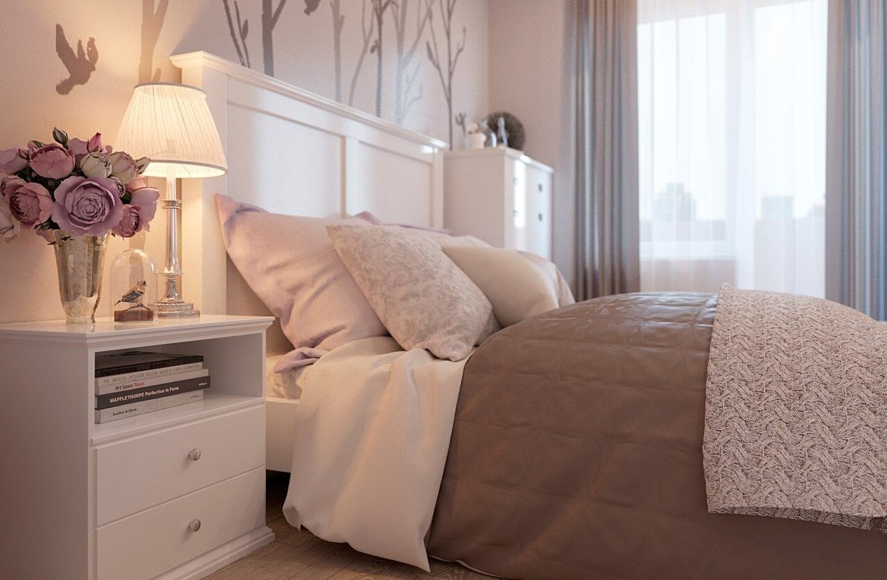 • Ночник, настольная лампа. Вместо бра и торшера на прикроватной тумбе можно разместить ночник или настольную лампу. Благодаря приглушенному освещению, они идеально подойдут для чтения и вечернего отдыха.