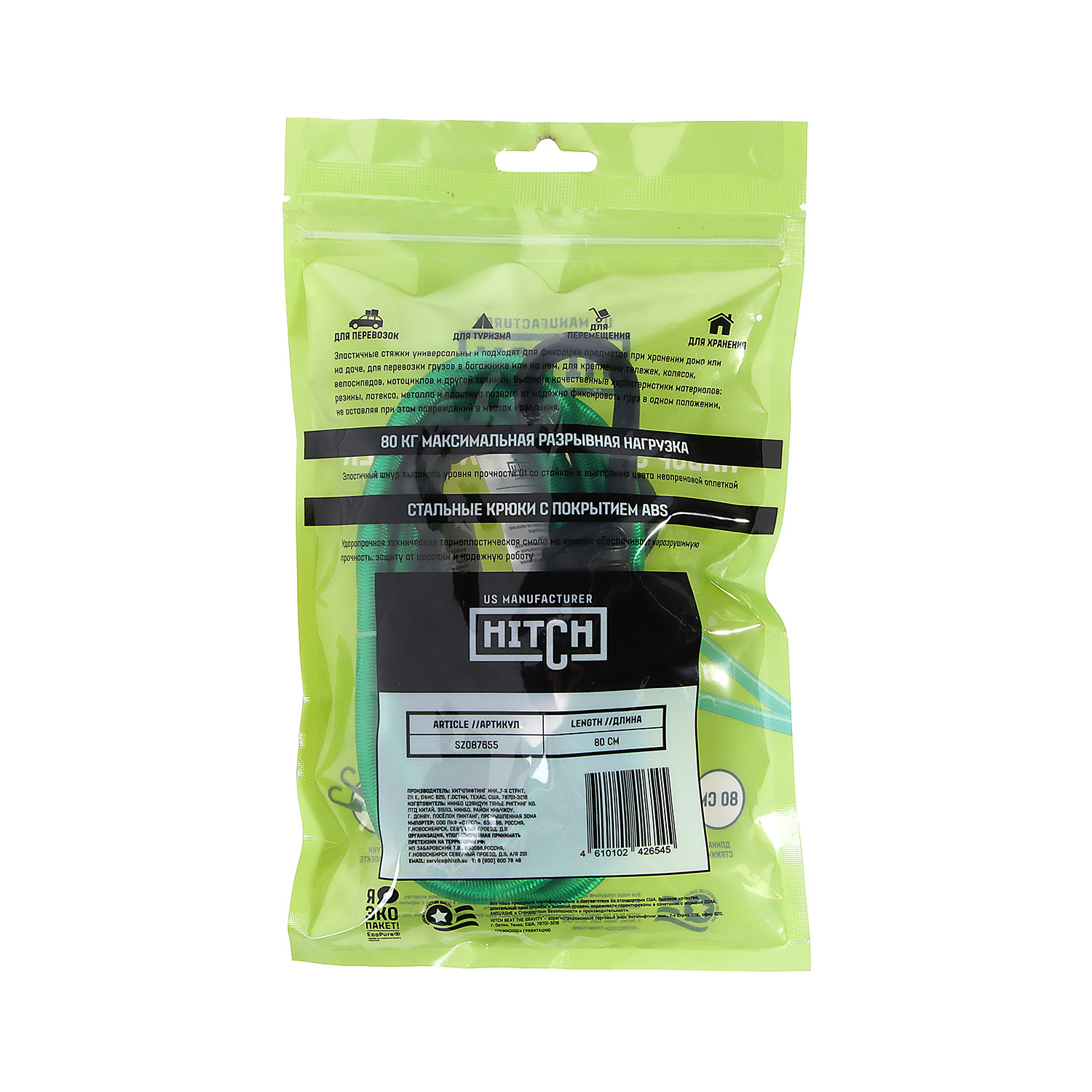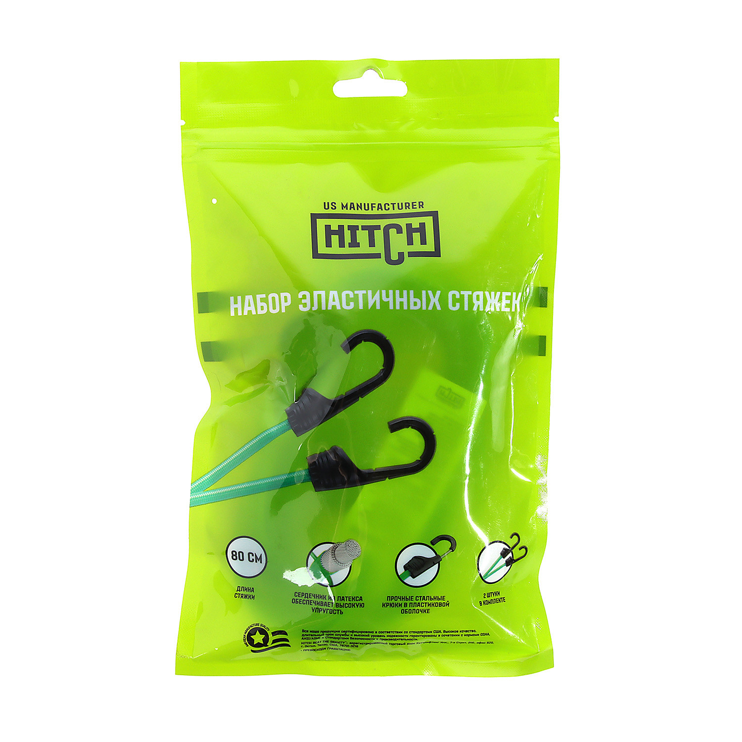 Стяжка эластичная  80см, d8мм, 2шт, резина,латекс, крюк.пласт, сердц.сталь арт.SZ087655 Hitch Regular *1/50