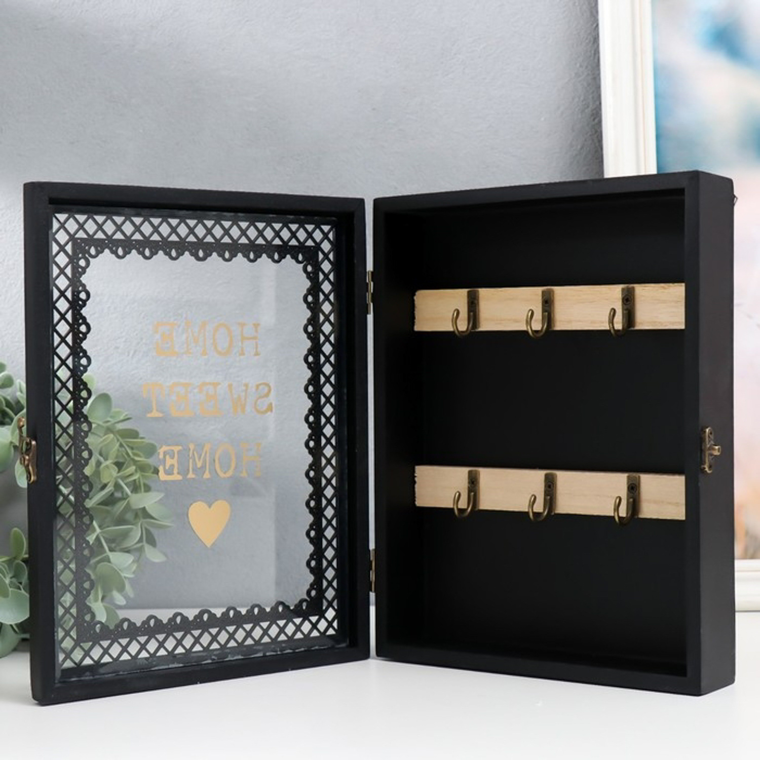 Ключница дерево 6 крючков "Дом, милый дом" чёрная 20х5,5х26 см 9330041