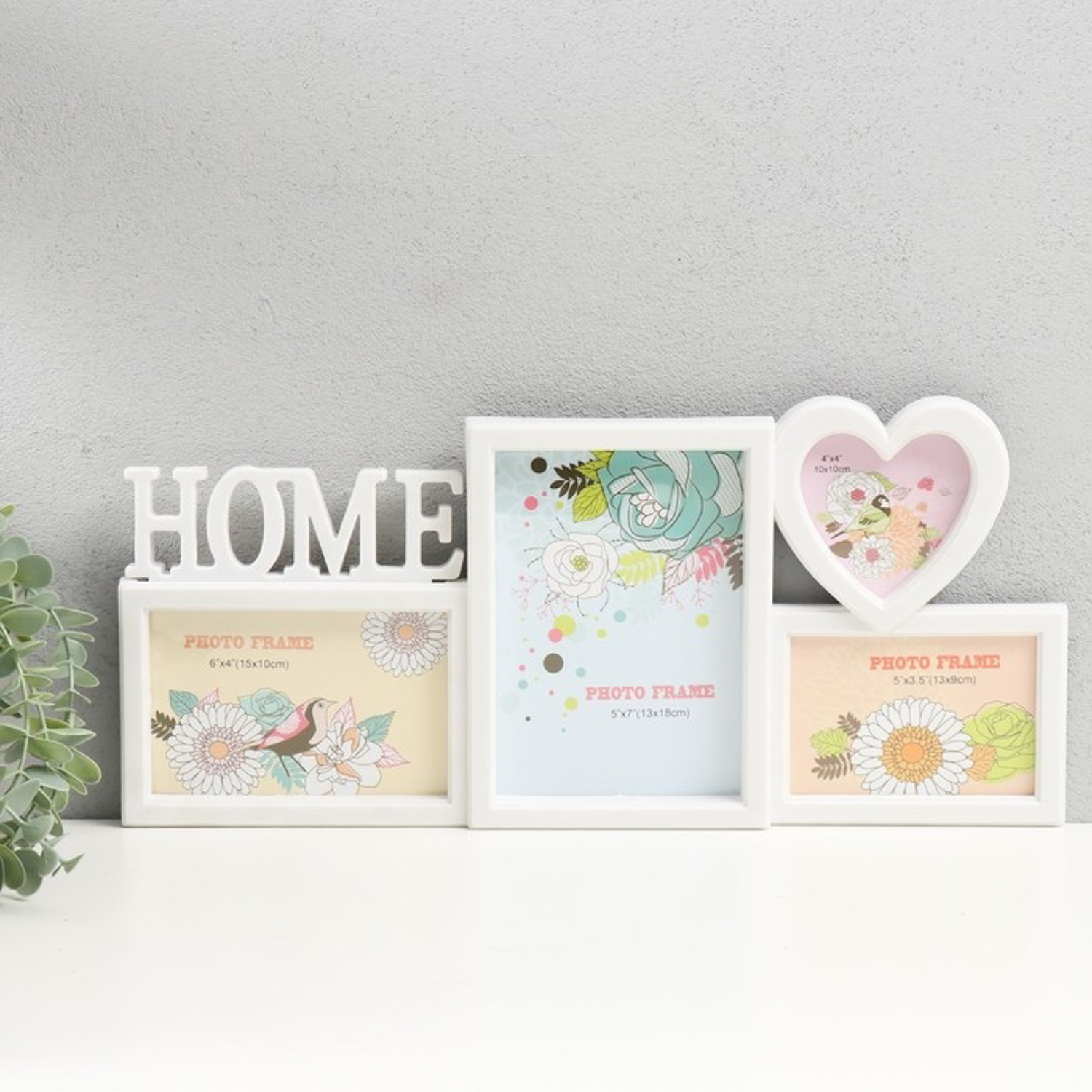 Фоторамка коллаж на 4 фото (1-10х15 см, 2-13х9 см, 1-13х18 см), 45х21 см, белый 10115302