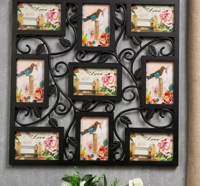 Фоторамка пластик на 9 фото 10х15 см "Вьюнок" чёрная 53х53 см 1109766