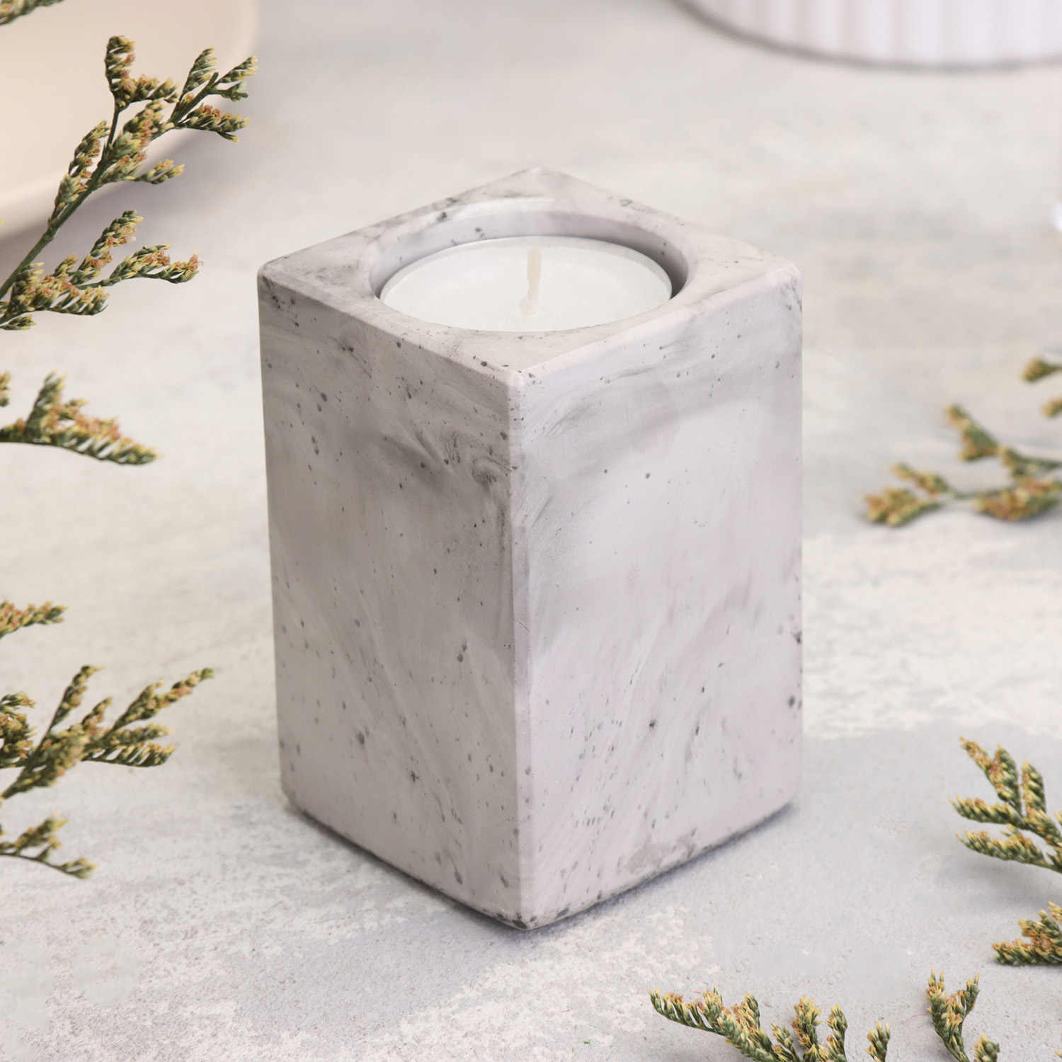Подсвечник "Квадрат" из гипса, 5х8см,мрамор с чёрными полосками 10059933