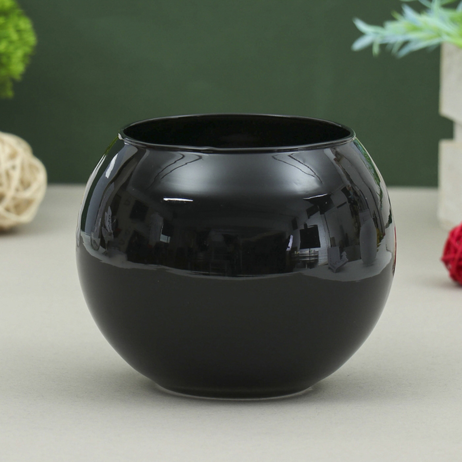 Ваза "Пять вечеров" чёрная глянцевая, шаровая 12х12х10 см, 1л   1169874