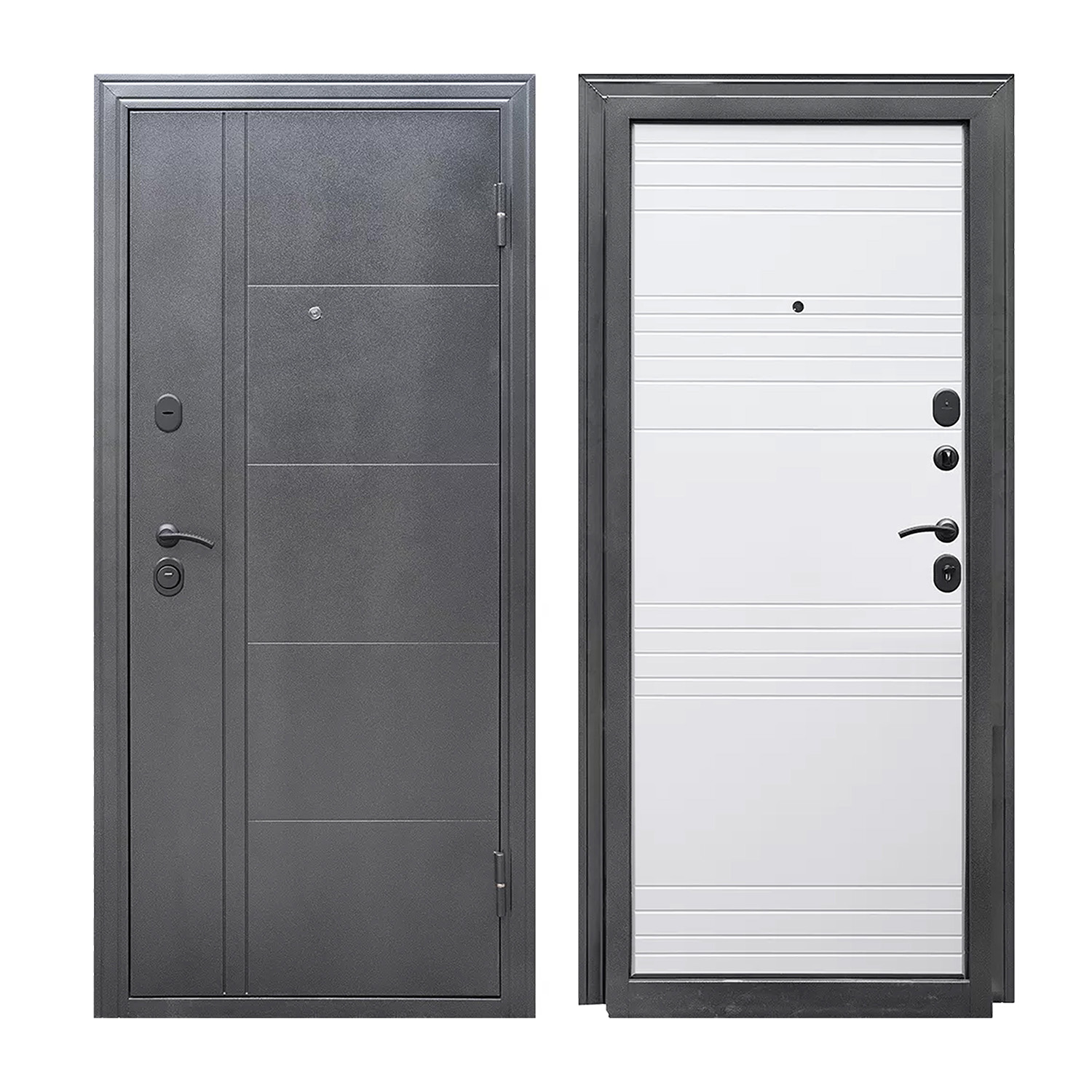 Дверное полотно, дверная коробка, замок основной, замок дополнительный, петли - 2 шт., ручки, наклад |