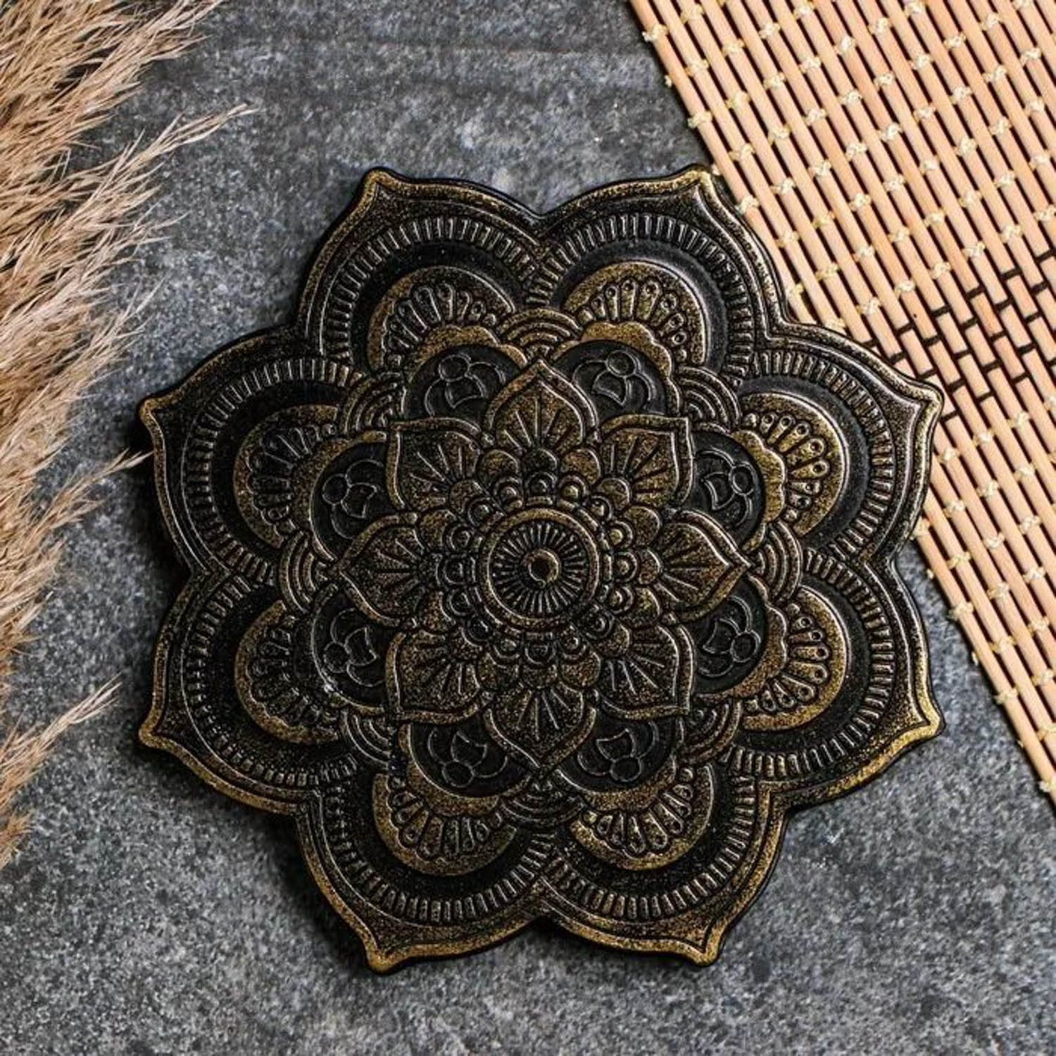 яяяПодставка для благовоний "Мандала" черное золото, 16х2см 9149853