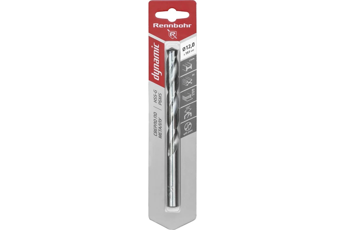 Сверло по металлу12,00*151/101мм HSS-G P6M5 (1шт) блистер арт.675120 DYNAMIC RENNBOHR *6/30/150