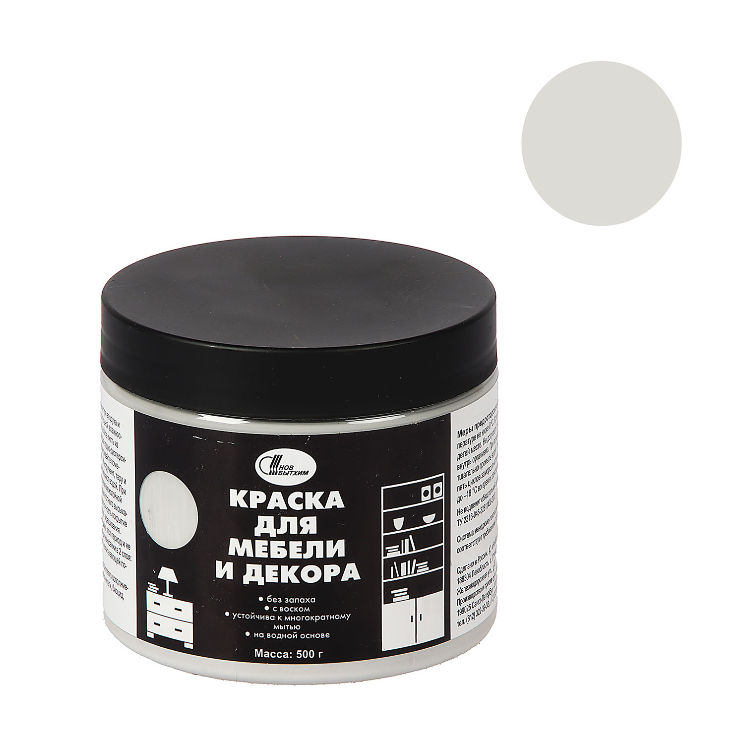 Краска акриловая для мебели и декора Дымчатый 0,5 кг Новбытхим *1/6