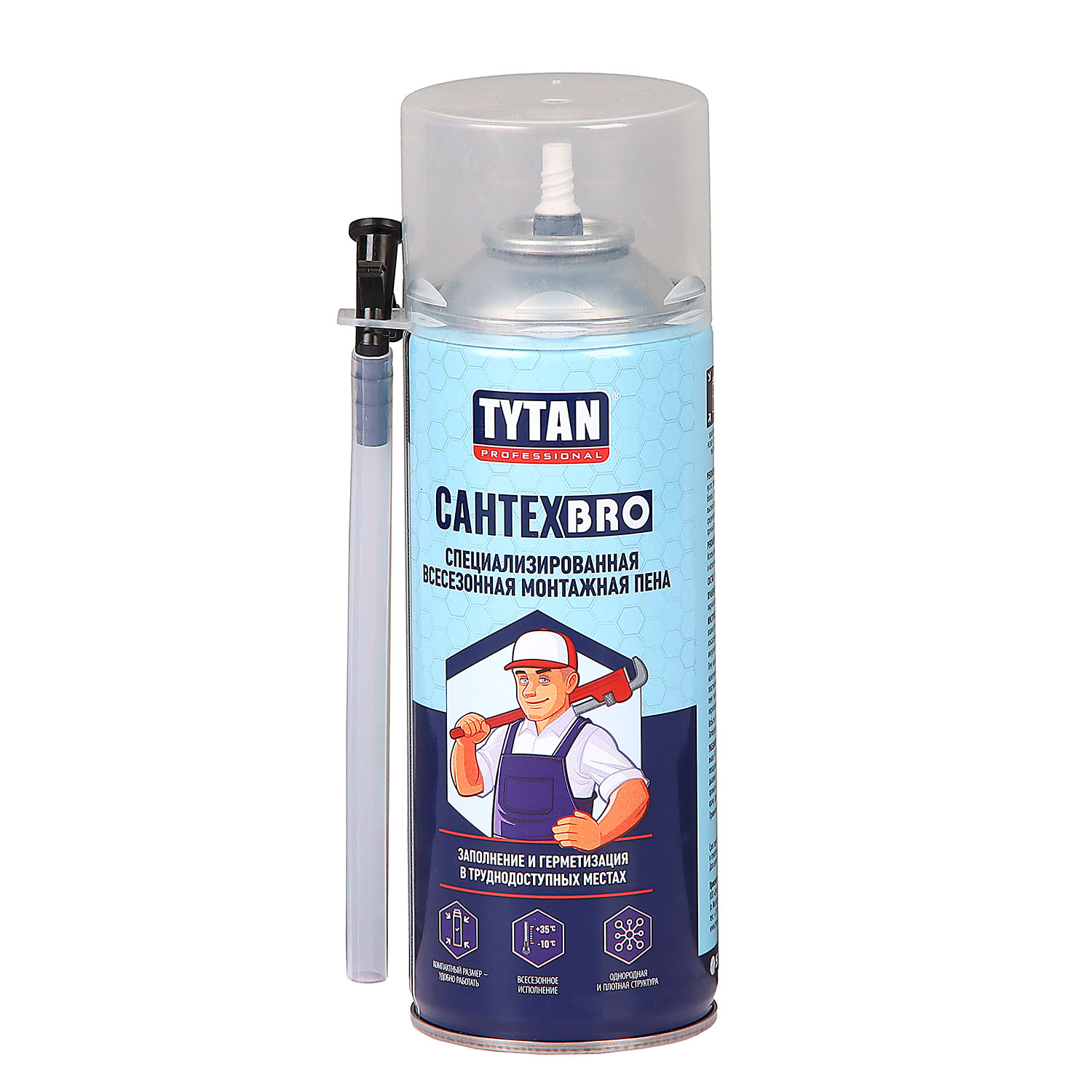 Пена монтажная TYTAN Professional САНТЕХBRO обладает отличной адгезией к типичным строительным материалам, таким как кирпич, бетон, штукатурка, дерево, металлы, пенопласт, твердый ПВХ, отвержденный пенополиуретан.