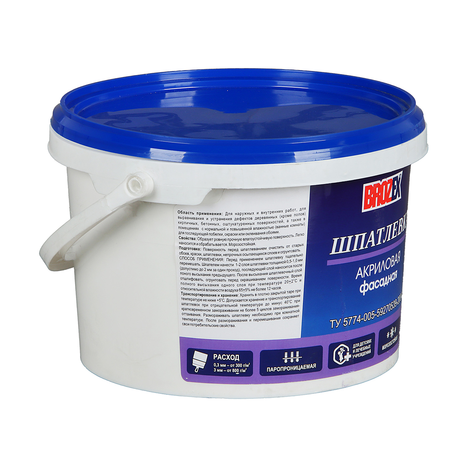 Шпатлевка фасадная акриловая BROZEX 5 кг образует ровную прочную влагостойкую поверхность. Легко наносится и обрабатывается. Применяется снаружи и внутри помещений.