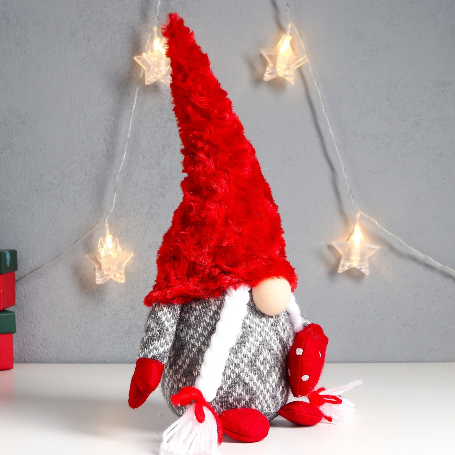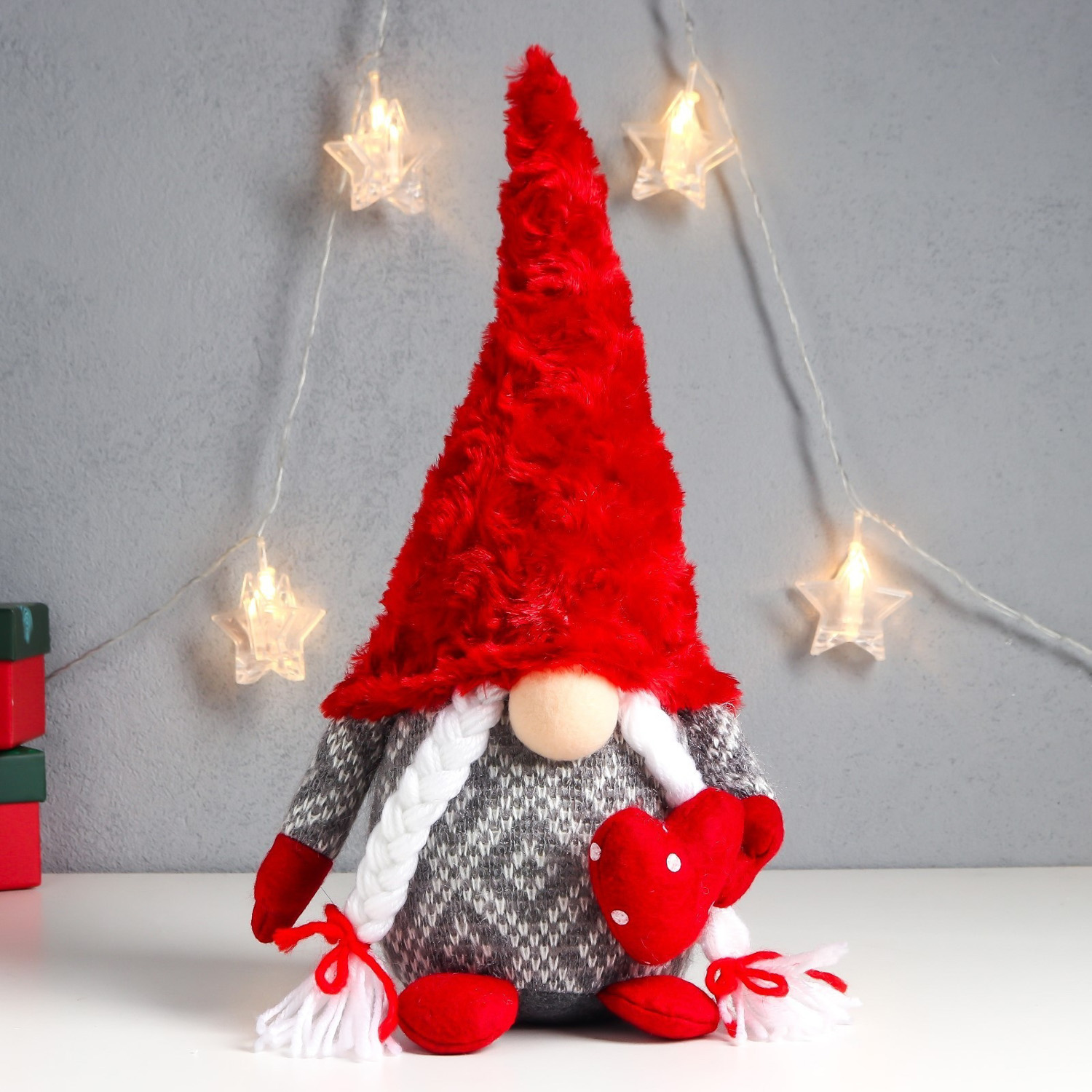 Кукла интерьерная свет "Бабусечка в с сердечком в горошек, меховой колпак" 35х14х14 см 7575281