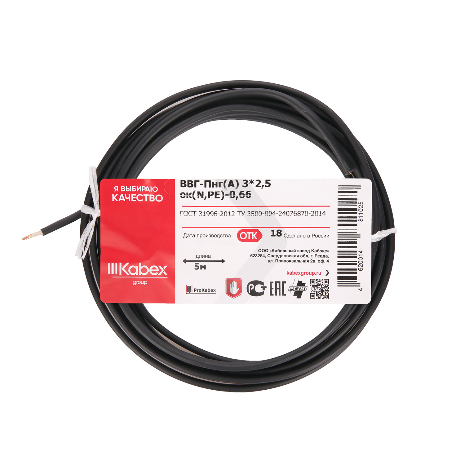 Кабель ВВГнг 3*2,5 (уп. 5м) ГОСТ