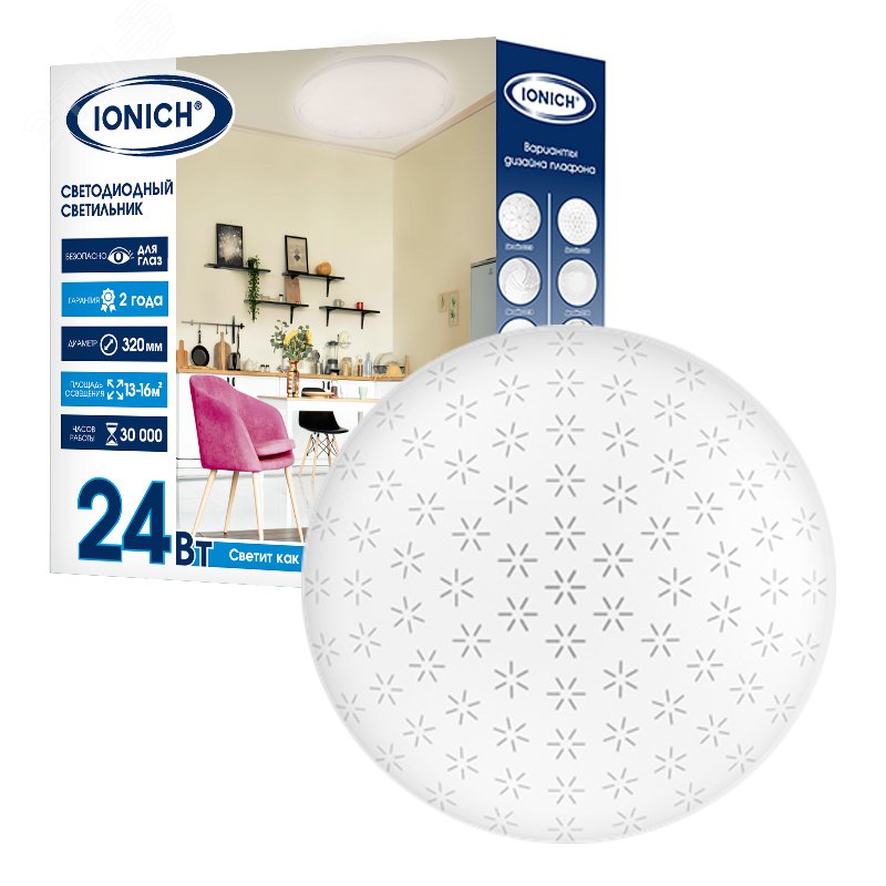 Светильник светодиодный акриловый 320мм IONICH "Орион" эффект "Звездное небо" 24Вт 6000-6500К 1680Лм S=9-12м2 1717*1/20