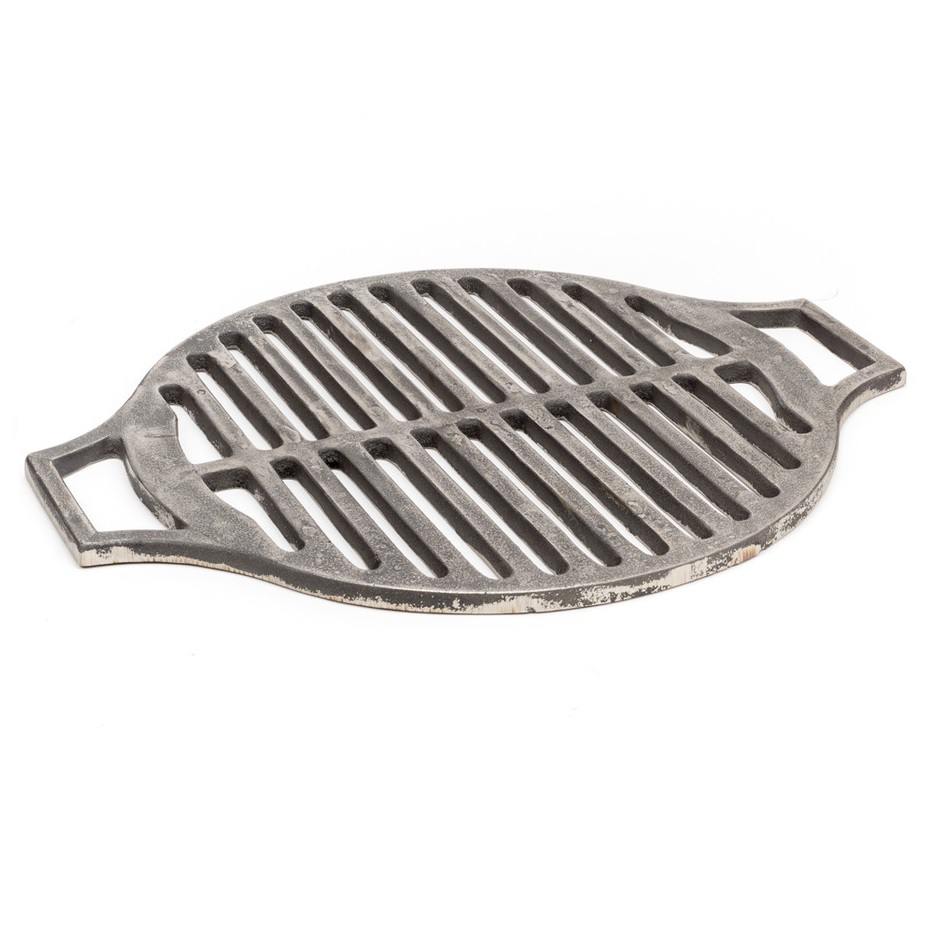 штЧугунная решетка-гриль подходит для мангала шириной до 40 см. Имеющиеся по краям ручки помогают удобно размещать решетку на мангале. Идеальная решетка для мангала приготовления мяса барбекю, стейков, котлет для бургеров, купат и сосисок, курицы и овощей-гриль. Превратите свой мангал в гриль. Отлично подойдет для применения на охоте, на даче, на пикнике, на природе.