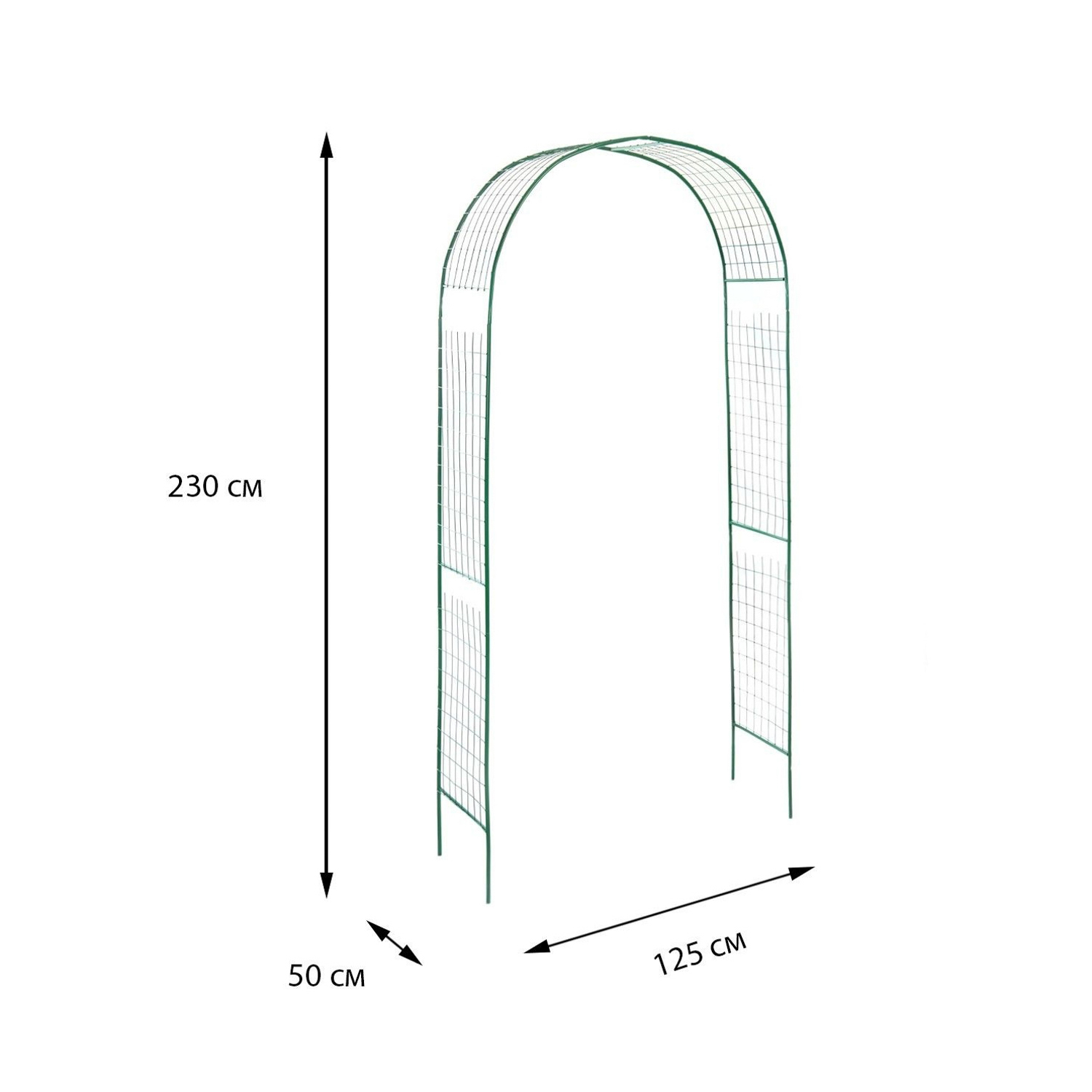 Арка садовая 230 х 125 х 50 см, разборная, металл, зелёная "Сетка", 2083025
