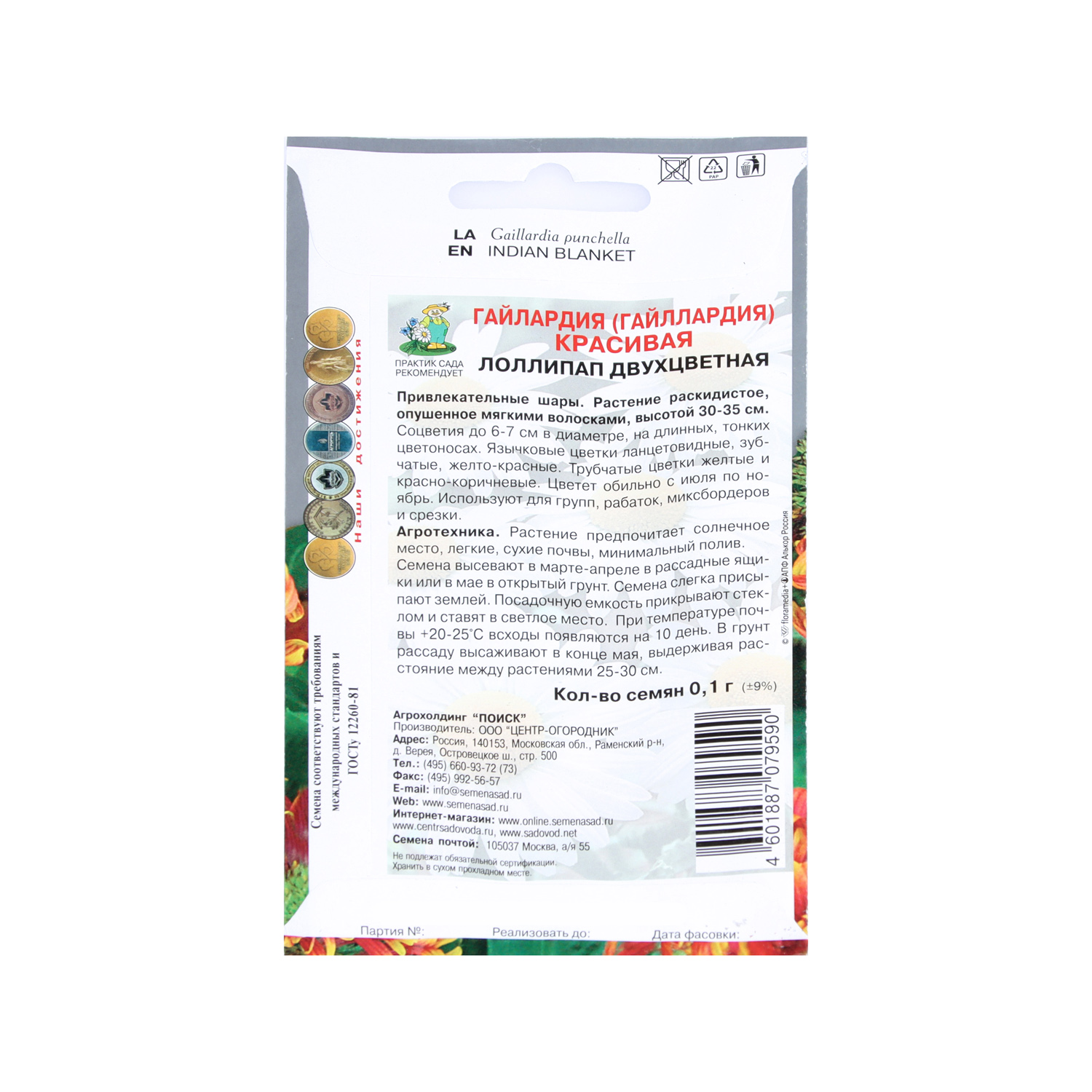 Семена Гайлардия красивая Двухцветная Лоллипап 0,1гр ПОИСК *10/200