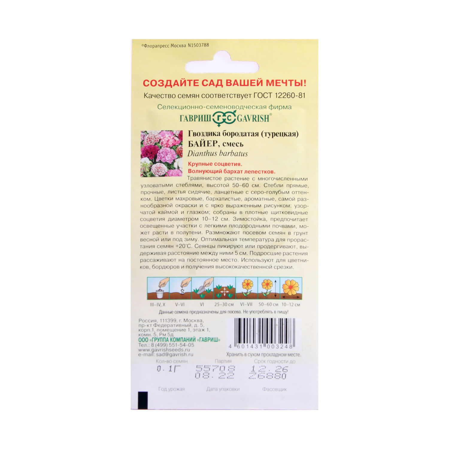 Семена Гвоздика бородатая турецкая Байер смесь 0,2гр Гавриш *10/200