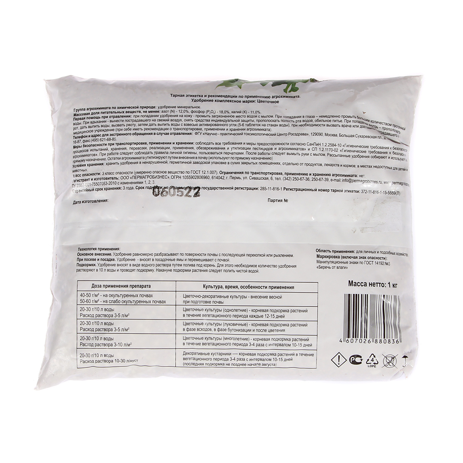 Азот 12%, фосфор 18%, калий 11%