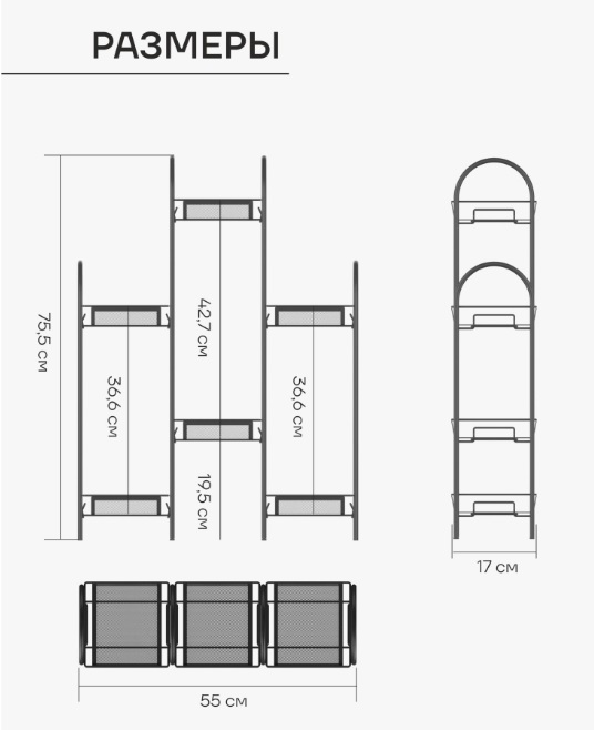 Этажерка для цвет.кашпо металл. "Лира 36" 6-и местн., ш.0,55м,в.0,75м,гл.0,17м Графит ПДЦЛ36 ГР *1