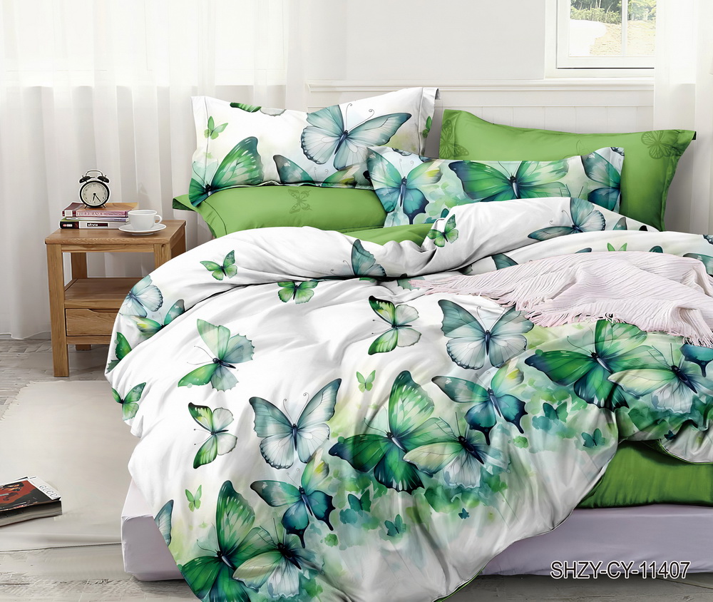 Постельное белье евро поплин на резинке Орхидея SHZY-CY-11407, наволочки 70*70 - 2шт *1/4