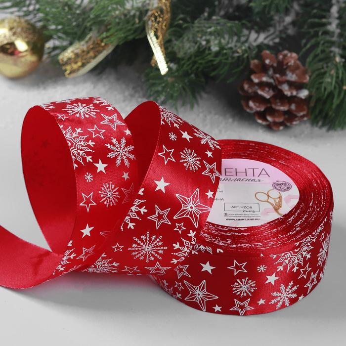 яяяЛента атласная 40мм*25±1ярд снежинки №33 красный/белый АУ  4937929