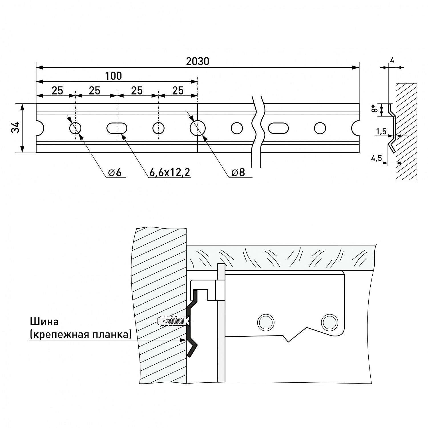 Шина для кухонных шкафов L-2м 33*1,5мм полимер Соллер *20