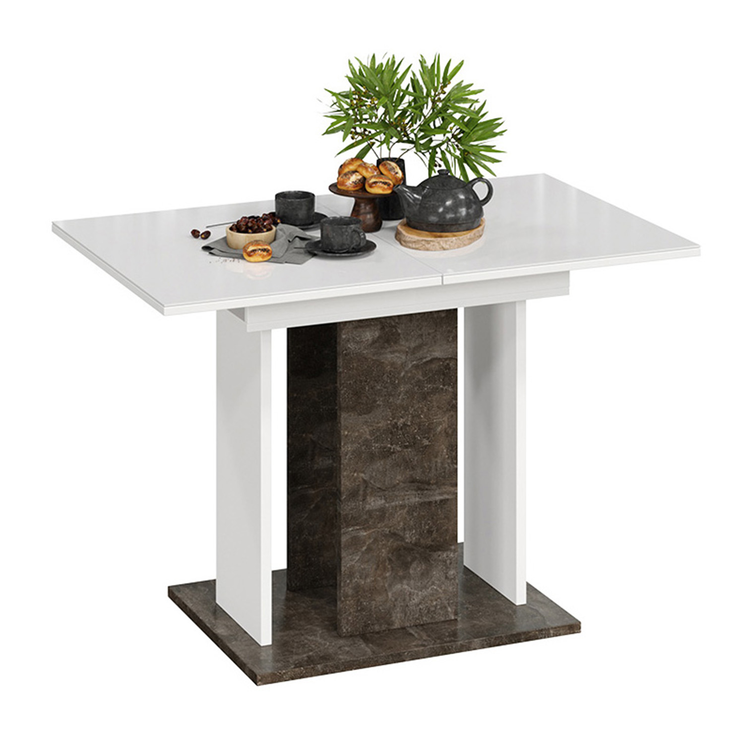 Стол обеденный прямоугольный раздв.Кёльн Тип1 Ателье темный, Белый, Стекло Белый глянец1