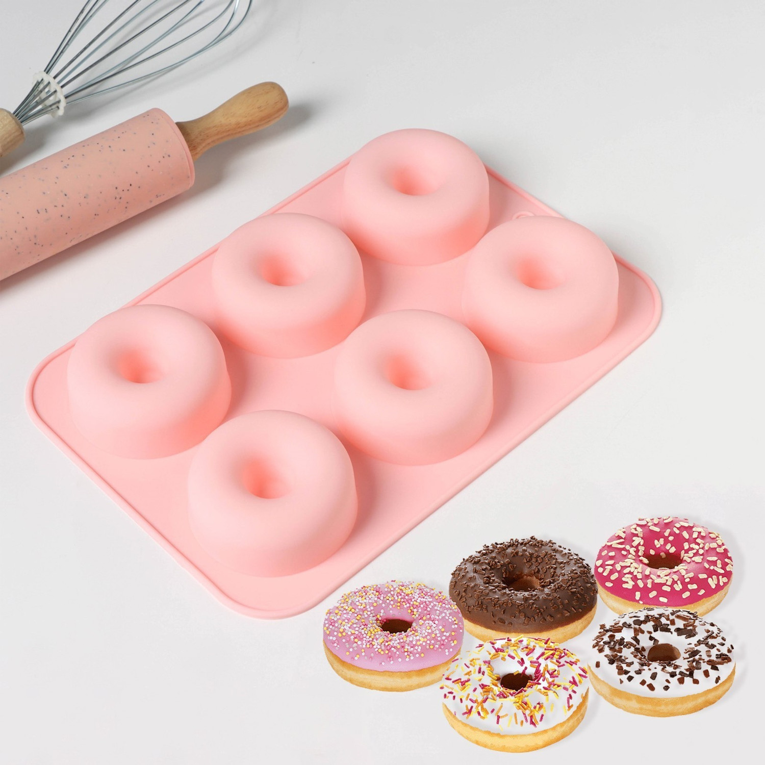 яяяФорма для выпечки 6 ячеек "Пончик" 26x18x4 см цвет МИКС 4449546