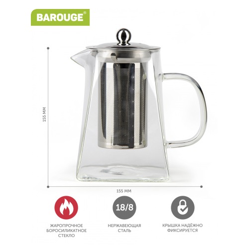 яяяЧайник заварочный жаропрочное стекло 950мл фильтр-сито (BF-508) "Barouge"  *1/36