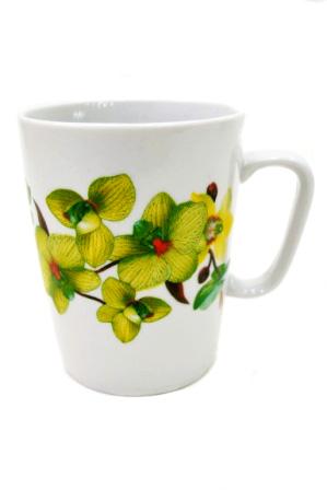 яяяКружка фарфор. 350мл "Конус" рис. "Орхидея зеленая" 040362 (Дулево) *24
