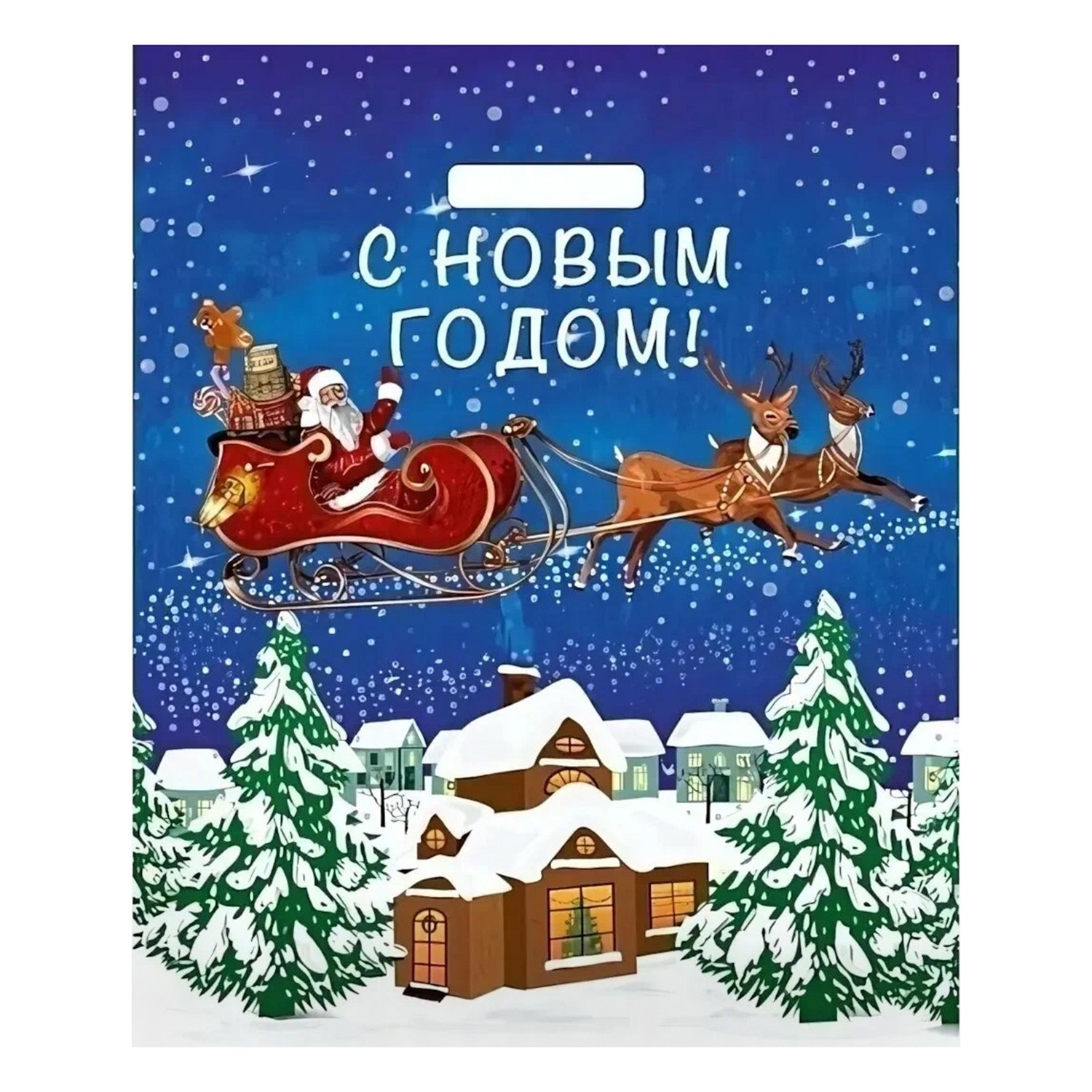 Пакет ПЭ с вырубной ручкой 38х45+3см (60) (Упряжка) НГ, глянцевый Артпласт (х25/500)