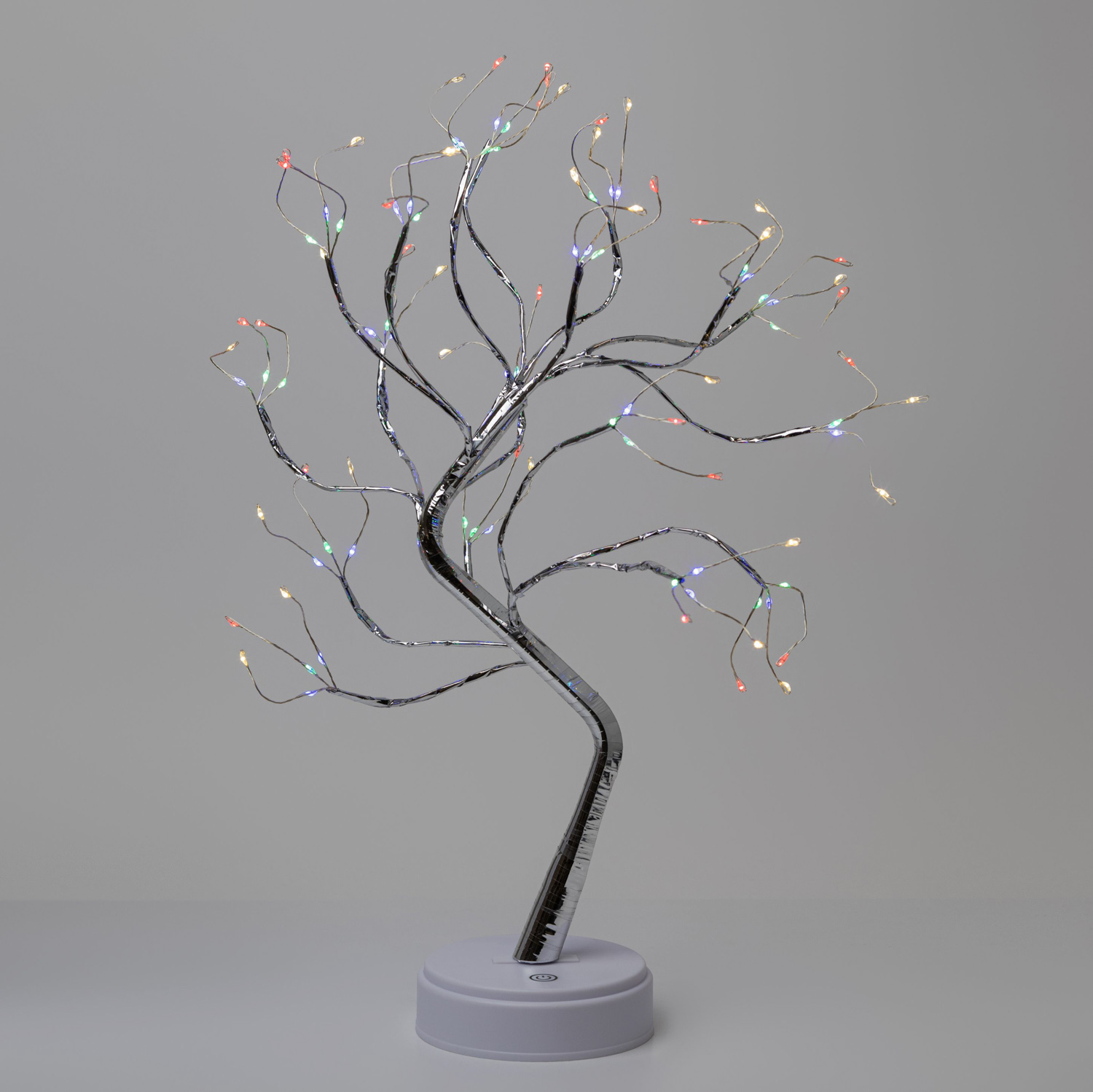Светодиодный декоративный светильник ЭРА «Дерево с самоцветами» с 36 миниатюрными светодиодами microLED – прекрасное решение для создания праздничной атмфосферы. Изделие можно использоваться как новогодний светильник, ночник, праздничный декор на стол и на полку для дома или офиса. Микросветодиоды – настоящий тренд в области декоративного освещения. Настольное светящееся дерево ЭРА высотой 45 см красиво светится разными цветами, microLED-лампочки украшают элегантные тонкие ветви с серебристым покрытием. Современный декоративный светильник ЭРА имеет сенсорное управление – удобная кнопка включения располагается на лаконичной подставке. Прибор может работать от 3 батареек АА и от USB-кабеля.