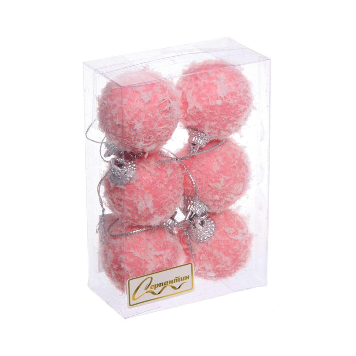 Новогодние шары "Воздушные перья" 4 см (набор 6 шт), розовый