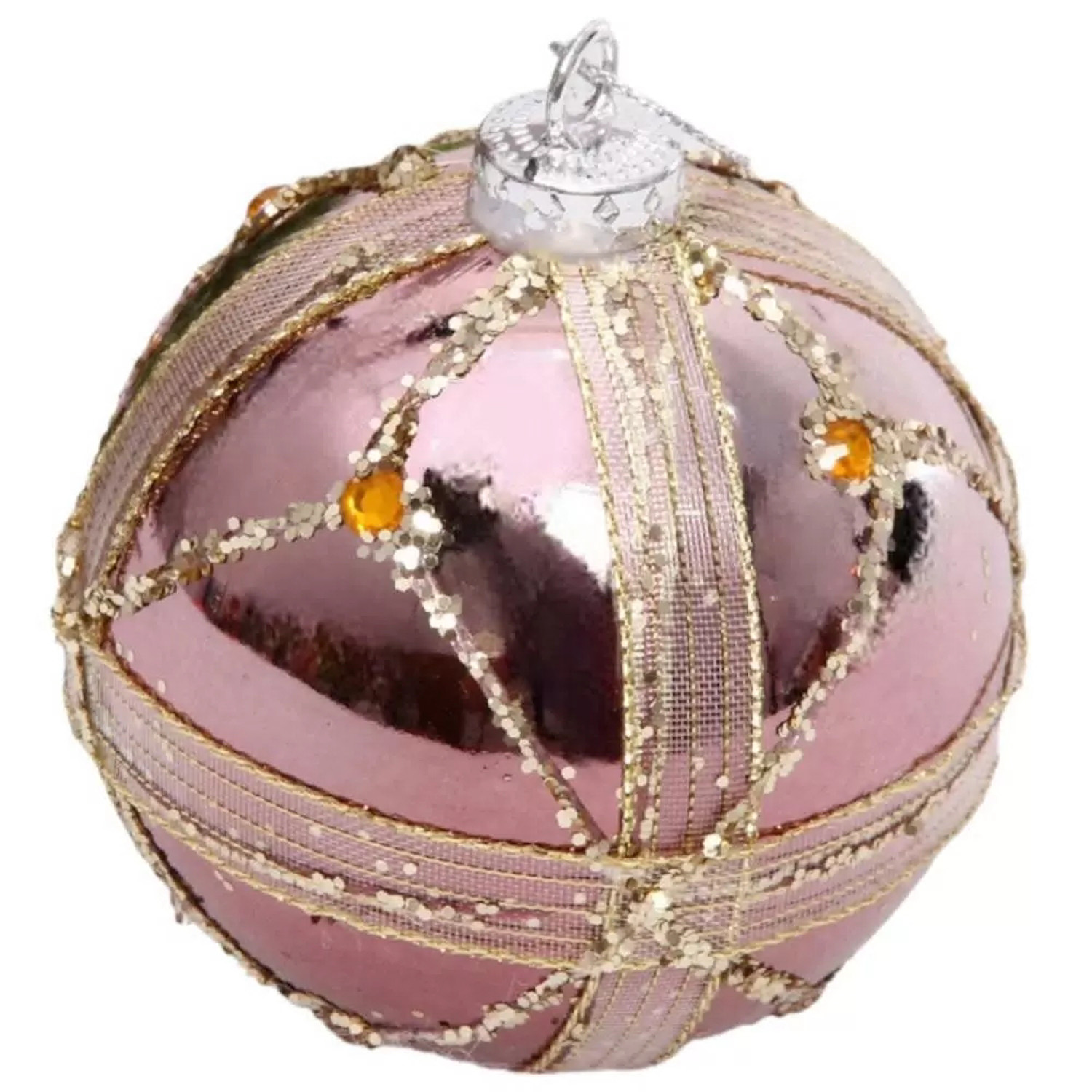 Новогодний шар "Изящные полосы" 8 см, Розовое золото