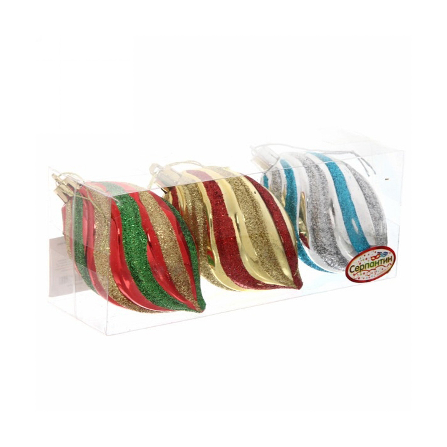 Ёлочные игрушки, набор 3шт, 9см"Капля блеск", микс