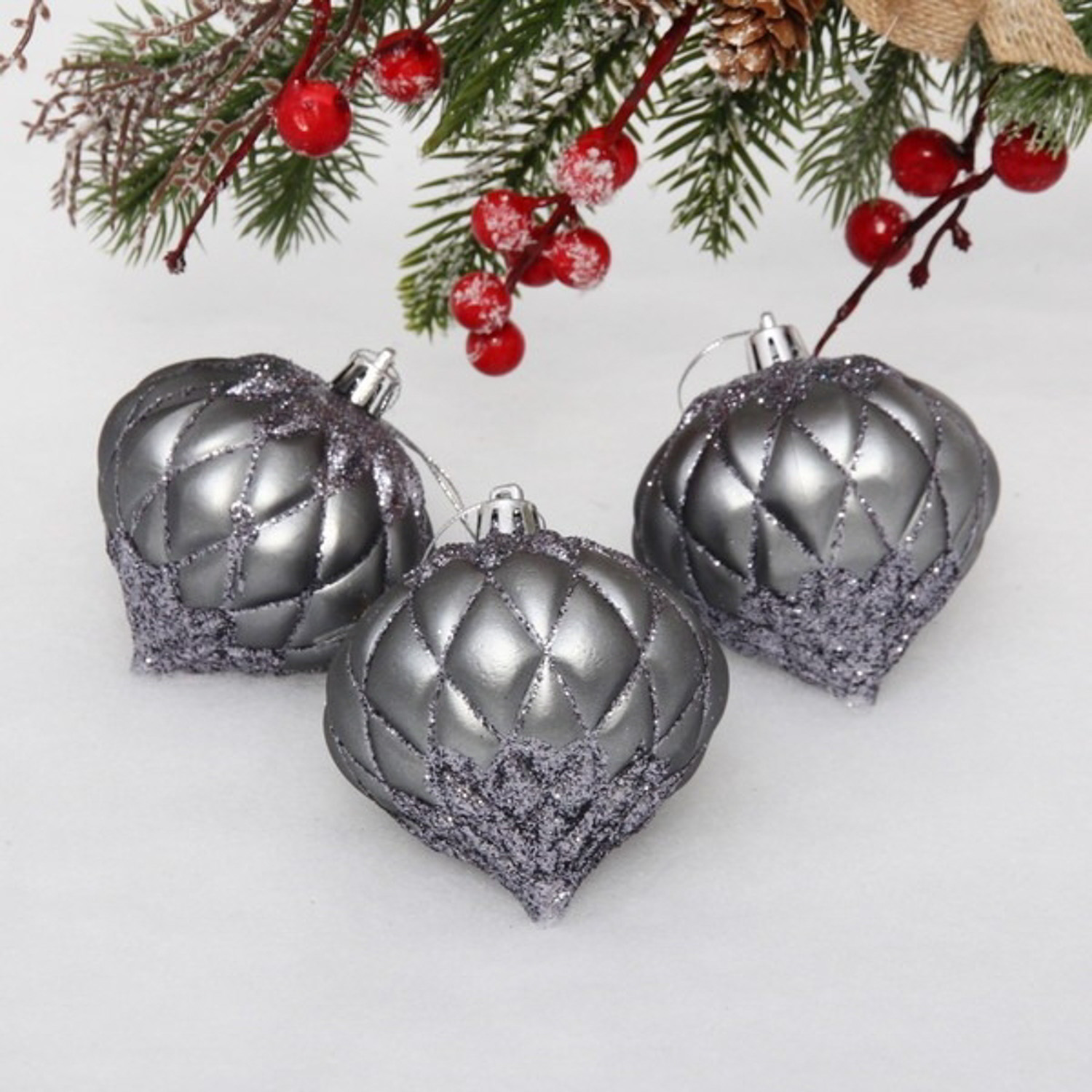 Ёлочные игрушки "Юла" 8 см (набор 3 шт), графит