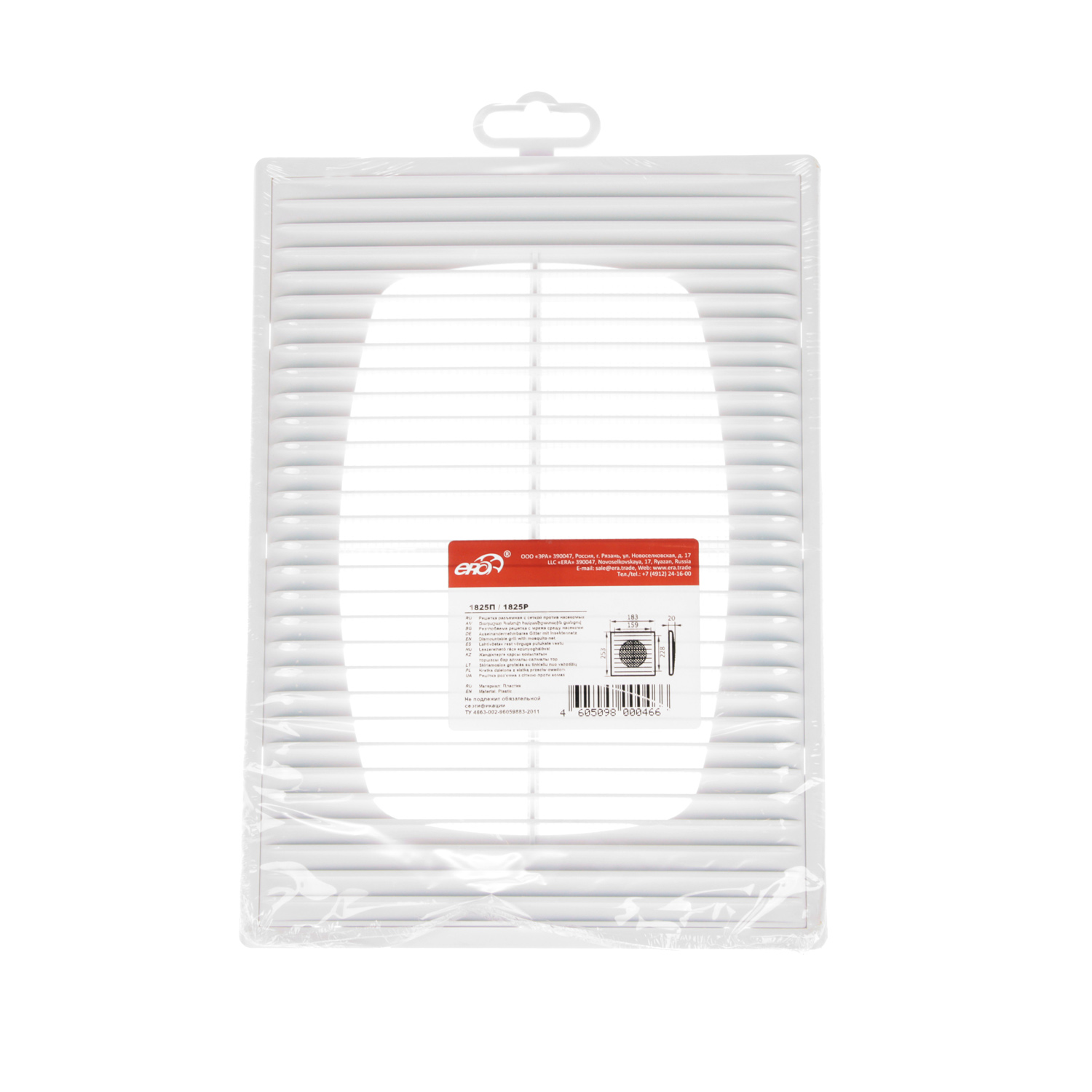 Решетка вентиляционная 183х253мм 1825П (с сеткой) Эковент *1/35