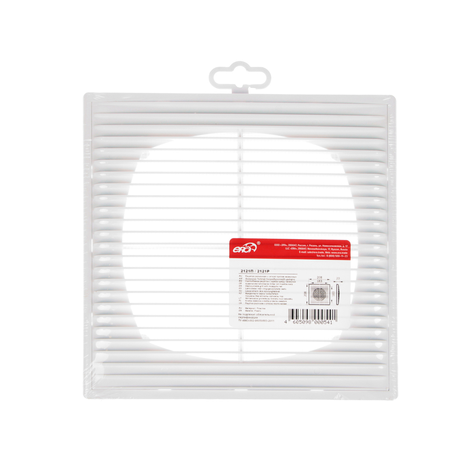 Решетка вентиляционная 208х208мм 2121П (с сеткой) Эковент *1/35